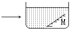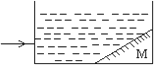 ,M为平面镜,有一束水平光线垂直于器壁入射,求平面镜M与水平面夹角为多大时,液体与空气交界面上能发生全反射?