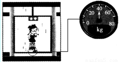 在升降电梯内的地面上放一体重计,电梯静止时,晓敏同学站在体重计上,体重计示数为50 kg,电梯运动过程中,某一段时间内晓敏同学发现体重计如右图所示,在这段时间内下列说法中正确的是( )