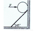 倾角为45°的斜面固定于竖直墙上,为使质量分布均匀的光滑球静止在如图所示的位置,需用一个水平推力F作用于球上,F的作用线通过球心。设球受到的重力为G,竖直墙对球的弹力为N1,斜面对球的弹力为N2,则下列说法中正确的是( )