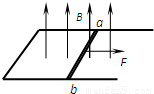 如图所示,水平U形光滑固定框架,宽度为L=1m,电阻忽略不计,导体棒ab的质量m=0.2kg、电阻R=0.5Ω,匀强磁场的磁感应强度B=0.2T,方向垂直框架平面向上。现用F=1N的外力由静止开始向右拉ab棒,当ab棒的速度达到5m/s时,求:
