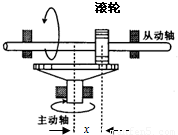 如图所示,为一种“滚轮--平盘无极变速器”的示意图,它由固定于主动轴上的平盘和可随从动轴移动的圆柱形滚轮组成.由于摩擦的作用,当平盘转动时,滚轮就会跟随转动.如果认为滚轮不会打滑,那么主动轴转速n1、从动轴转速n2、滚轮半径r以及滚轮中心距离主动轴轴线的距离x之间的关系是( )