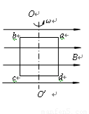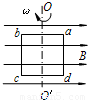 如图所示,闭合的矩形导体线圈abcd在匀强磁场中绕垂直于磁感线的对称轴OO′匀速转动,沿着OO′方向观察,线圈沿逆时针方向转动。已知匀强磁场的磁感强度为B,线圈匝数为n,ab边的边长为l1,ad边的边长为l2,线圈总电阻为R,转动的角速度为