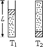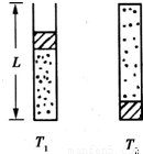 一竖直放置的、长为L的圆筒下端封闭,上端与大气(视为理想气体)相通,初始时筒内气体温度为T1.现将一可沿筒壁自由滑动的活塞从上端放进圆筒,活塞下滑过程中气体温度保持不变且没有气体漏出,平衡后圆筒内活塞上下两部分气柱长度比为l∶3.若将圆筒下部气体温度降至T2,在保持温度不变的条件下将筒倒置,平衡后活塞下端与圆筒下端刚好平齐.已知T1=