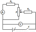 如图所示电路,电源内阻为r,定值电阻R1的阻值小于变阻器R的总阻值,闭合K,当滑片P在变阻器的中点时,电压表V的示数为U,电流表A的示数为I,则当滑片P从变阻器中点向上滑动的过程中