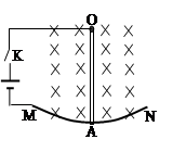 如图所示,一根均匀导体棒OA长为L,质量为m,上端与水平固定转轴O连接,下端与圆弧金属导轨MN良好接触,不计摩擦和导轨电阻.匀强磁场的磁感强度为B,方向水平.闭合电键K,OA从竖直方向偏离角度为θ后静止,则电路中的电流为________;现使OA从竖直方向偏离角度为2θ后静止,若其它条件不变,则磁感强度应变为___________.![]()