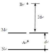 (12分)带有等量异种电荷的两块水平金属板M、N正对放置,相距为d(d远小于两板的长和宽),一个带正电的油滴A恰好能悬浮在两板正中央,如图所示。A的质量为m,所带电荷量为q,在A正上方距离M板2d处,有另一质量也为m的带电油滴B由静止释放,可穿过M板上的小孔进入两板间,若能与油滴A相碰,会结合成一个油滴,结合后的瞬间该油滴的速度为碰前油滴B速度的一半,方向竖直向下。整个装置放在真空环境中,不计油滴B和A间的库仑力以及金属板的厚度,为使油滴B能与油滴A相碰且结合后不会与金属板N接触,重力加速度取g,求:![]()