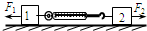 精英家教网物块1、2放在光滑水平面上加用轻质弹簧相连,如图所示.今对物块1、2分别施以方向相反的水平力F1、F2.且F1大于F2,则弹簧秤的示数(  )