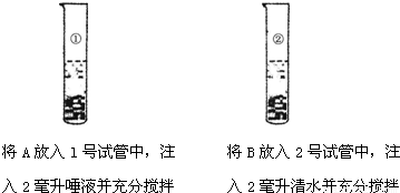 取一块馒头放在口里咀嚼,细细品味时,会尝出一些甜味来,并且会越嚼越甜.这与馒头中淀粉在口腔里的变化有关.某实验小组将少许馒头切碎,平均分成A、B两份,作如图处理.请根据实验回答问题: