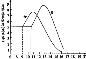 下图是某中学男、女生身高生长速度曲线图,下列说法正确的是