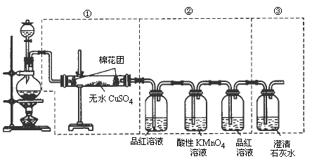 装置中①检出的物质是________,②的作用是________,③可以证明生成物有________;浓硫酸与木炭粉在加热条件下反应的化学方程式是:________.