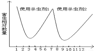 的结果.当第七年使用杀虫剂2时,害虫由于不适应改变了的环境而大量死亡,经过再次积累,新的