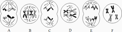 细胞中含同源染色体的只有A、B、D、F