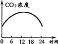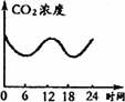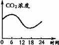 某学生在玻璃温室里进行植物栽培实验,为此他对室内空气中的CO2含量进行24h的测定,下列曲线中能正确表示其测定结果的是:(横坐标为当日时间,纵坐标为CO2浓度)