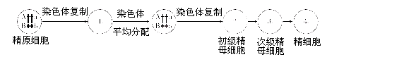 在荧光显微镜下观察某动物的一个精原细胞的如下分裂过程,该过程中基因A、a、B、b被分别标记为红、黄、蓝、绿色。①②③细胞都处于染色体向两极移动的时期。不考虑基因突变和交叉互换,下列有关推测合理的是 ( )