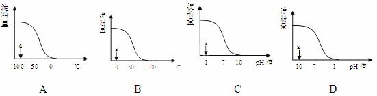 下列各图,纵坐标表示烧杯中的淀粉量,横坐标表示反应条件的变化。在a点所对应的条件下加入淀粉酶,淀粉量可能发生变化,其中能正确反映淀粉量变化的图像是![]()
