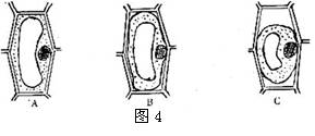 图4 A、B、C为同一个洋葱表皮细胞在0.3 g·mL-1的蔗糖溶液中依次呈现的三种状态,则相关状态下,细胞液的浓度关系是( )![]()