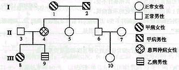 下图是具有两种遗传病的家族系谱图,设甲病显性基因为A,隐性基因为a;乙病显性基因为B,隐性基因为b。若Ⅱ-7为纯合子,请据图回答:?