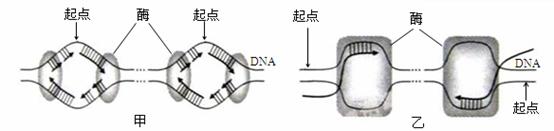 | C.DNA分子解旋时,甲所示过程不需要解旋酶,乙需要解旋酶 |