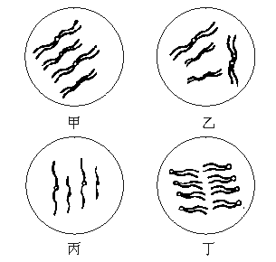 | A.乙与丙细胞内染色体数目相等 | B.丁的母细胞有4条染色体 |