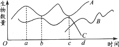 在烧杯中加入一些枯草浸出液,烧杯中的枯草杆菌以其中的有机物为食,过几天后放入大草履虫,再过一段时间后,放入双小核草履虫,它们均以枯草杆菌为食。三种生物在浸出液中数量的增减情况用图中A、B、C曲线表示,据图分析回答:![]()