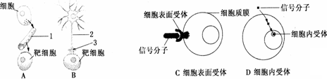 (3)根据丙、丁可知靶细胞上接受信号分子的受体有两种,一类是细胞表面受体,一类是细胞内受体。信号分子与受体结合的部分与细胞膜的特性以及信号分子的化学性质有关。下列物质属于信号分子并且是通过细胞内的某些物质选择性的识别和结合而实现的是