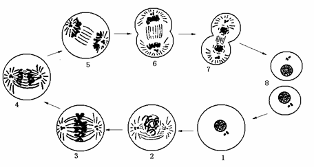 下图为动物细胞有丝分裂模式图,请回答问题: