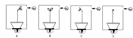 下图在方形暗箱的右侧开一小窗,暗箱外的右侧有一固定光源,在暗箱内放一盆幼苗,花盆能随着下面的旋转器水平匀速旋转,但暗箱不转,一周后,幼苗的生长状况应为