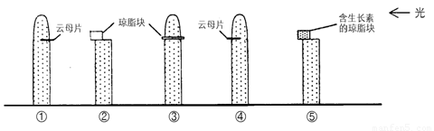 燕麦胚芽鞘进行以下处理,均给予右侧光照射。(云母片透光、不透水)。图中能向右侧弯曲的是![]()