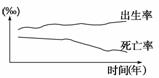 如图为某地的人口出生率和死亡率的变化曲线。下列叙述不正确的是( )