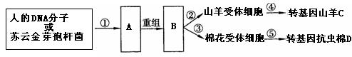 (1)在基因工程中,A表示 ,如果直接从苏云金杆菌中获得抗虫基因,①过程使用的酶区别于其他酶的特点是 。