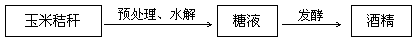 乙醇等"绿色能源"的开发备受世界关注。利用玉米秸秆生产燃料酒精的大致流程为: