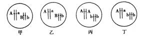 下图甲、乙、丙、丁表示的四株豌豆体细胞中的两对基因及其在染色体上的位置,下列分析不正确的是![]()