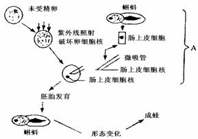 下图所示为用两栖动物的卵所做的实验图解,据图回答下列问题: