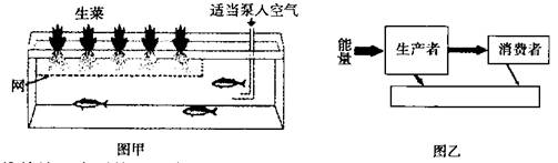 某研究性学习小组在冬季设计了如图甲所示的生态系统。培养液中种植有生菜,还生活有藻类植物、硝化细菌、水蚤、鲤鱼、腐生细菌等。水蚤以藻类植物为食,鲤鱼以水蚤和藻类植物为食。请回答: