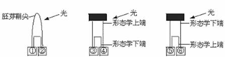 ①把不含生长素的两小块琼脂放在燕麦胚芽鞘下端(如下图所示);