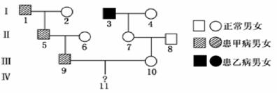 ②如果Ⅳ11是男孩,则该男孩同时患甲病和乙病的概率为 ,只患甲病的概率为