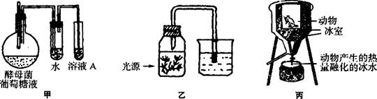 下图是研究生物体生命活动的几个装置,实验材料分别是酵母菌、金鱼藻和小鼠。对实验内容描述正确的是 ( )