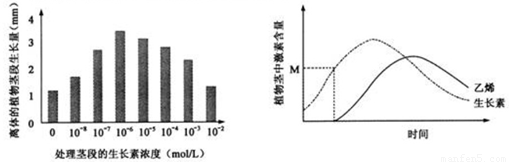 | B.该植物茎中生长素含量达到M值时,植物开始合成乙烯 |