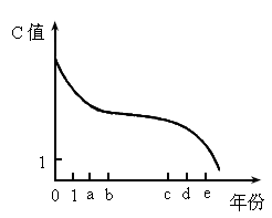 有一片长有马尾松和山毛榉的针、阔叶混交林,逐年对两个树种的存量进行统计,马尾松和山毛榉存量的比值记作C,做出曲线如图所示。请根据图回答:
