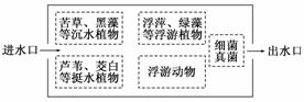 由于经济发展和人口增长,污水排放量增加。为解决嘉兴市区生活饮用水问题,某水厂建设了水源生态湿地。下面为人工湿地群落组成简图,请据图回答问题: