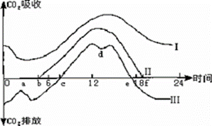 A.Ⅲ曲线与时间轴交点c和e时,光合作用吸收的CO2和呼吸作用释放的CO2量相等