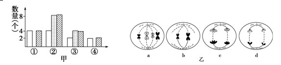 如图所示,甲图表示动物精巢内体细胞分裂及其精子形成过程中染色体、染色单体、DNA数量的变化图,乙图表示在上述两种细胞分裂过程的各个时期染色体变化模式图。乙图所示与甲图所示相对应的是( )![]()