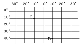 (2)写出C、D两点的经纬度:C( 、 )、D( 、 )。