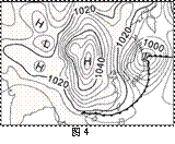 图4是东亚某日天气图,图中等值线为等压线,数值单位为百帕,据此完成5~6题: