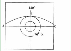 下图表示全球处在同一日期时,曲线ABC上的太阳高度为0°。读图完成下列21~22题。