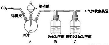 | 加热烧瓶,反应开始后停止加热. | ①A中有红棕色气体产生,一段时间后,气体颜色逐渐变浅; B中溶液变棕色; C中溶液紫色变浅. ②反应停止后,A中无固体剩余. |