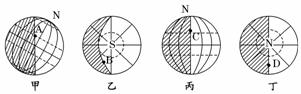 在下面四幅图的A、B、C、D四点中,处于黄昏的是 ( )