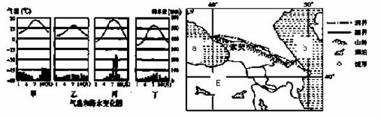 (1)读气温和降水变化图描述甲气候类型的气温和降水特征。