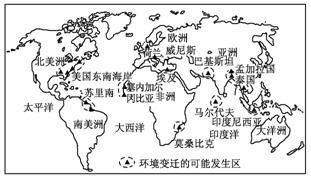 下图示意的是全球可能发生的某种“环境变迁”,读后回答