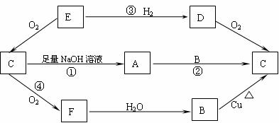 (9分)下图是六种物质的相互转化关系,已知E是固体单质,六种物质均含有E元素。![]()